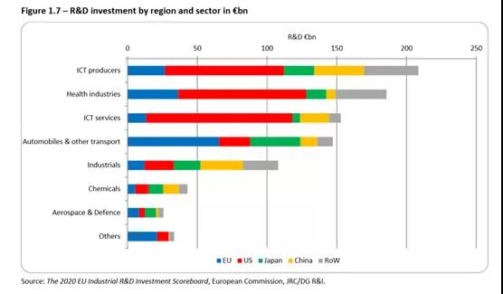 通過對歐盟發(fā)布的這個(gè)2020全球企業(yè)研發(fā)支出2500強(qiáng)的分析,其實(shí)結(jié)果是一樣的,可以看出ICT產(chǎn)業(yè)是全球研發(fā)投入最高,且在主要行業(yè)中研發(fā)支出增長最快,這也是為什么這兩年和美國的貿(mào)易戰(zhàn),科技戰(zhàn),高度集中在這個(gè)產(chǎn)業(yè)的原因,華為,中興,中芯國際,???,大華,商湯,科大訊飛等上了實(shí)體清單的企業(yè),都在ICT產(chǎn)業(yè)里面。