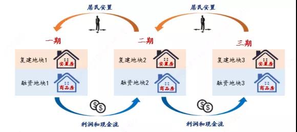 城市更新項目一般通過滾動開發(fā)模式平衡資金。部分安置、部分出售、分期投入、滾動開發(fā)是城市更新項目的基本思路。城市更新項目一般以安置區(qū)作為啟動,安置部分拆遷戶,剩余房產(chǎn)出售,產(chǎn)生利潤,滾動進入下一期的開發(fā)成本,可較好的緩解實施主體資金壓力。