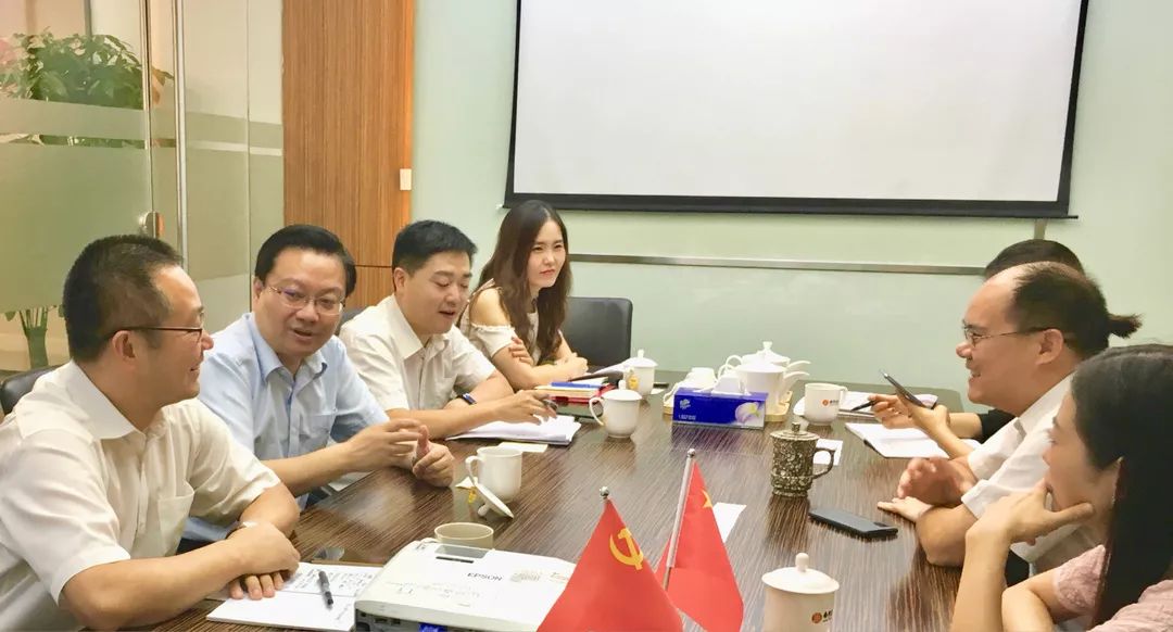 7月26日,建設(shè)銀行廣州分行副行長程飛沫一行專程到訪廣州南粵基金集團(tuán)有限公司(簡稱“南粵基金”)并進(jìn)行業(yè)務(wù)座談,南粵基金總裁曾金賢出席座談會。