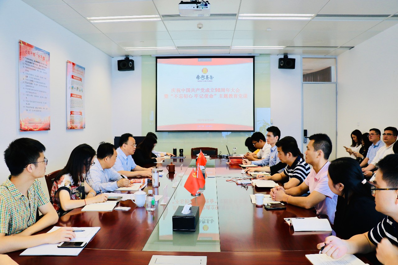 6月28日上午10時(shí),廣州國際金融中心5703會(huì)議室,南粵基金在家黨員干部齊聚一堂,聚精會(huì)神,一場主題為慶祝建黨98周年暨不忘初心牢記使命主題教育的特殊黨課正生動(dòng)開展。什么是初心?為什么要堅(jiān)守初心?怎么才能不忘初心?授課者聲情并茂的講述,讓全場黨員一同沉浸在建黨偉業(yè)的磅礴史詩和波瀾壯闊的崢嶸歲月,一起深思如何堅(jiān)定不移走好新時(shí)代長征路。