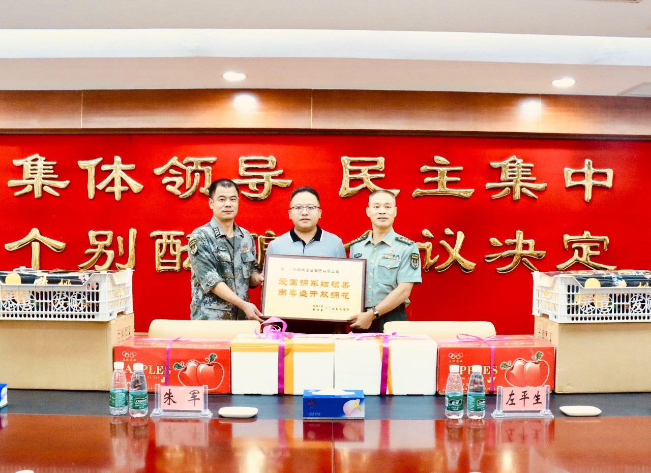 7月29日下午,在八一建軍節(jié)即將到來之際,廣州南粵基金集團(tuán)有限公司(簡稱“南粵基金”)董事長林濤、總裁曾金賢率全體高管,來到中國人民解放軍聯(lián)勤保障32555部隊駐地,向全體官兵送上節(jié)日慰問品并致以親切問候和美好祝愿,并與部隊官兵親切座談,共敘軍民深厚情誼。