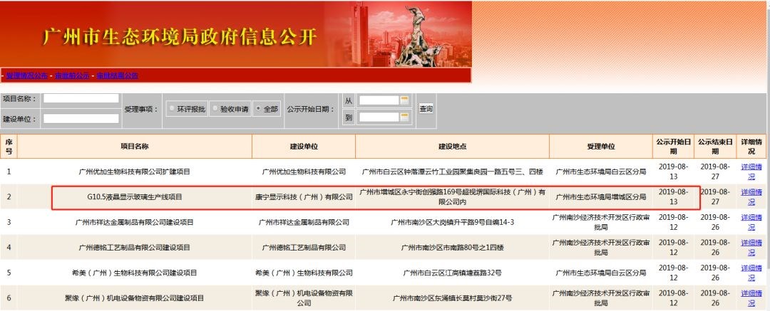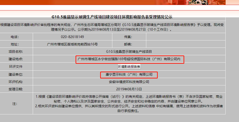 8月13日,廣州市生態(tài)環(huán)境局正式受理并公示康寧集團(tuán)關(guān)于G10.5液晶顯示玻璃生產(chǎn)線項(xiàng)目的官方環(huán)評(píng)申請(qǐng),這意味著廣州獨(dú)有的第10.5代TFT-LCD顯示器件項(xiàng)目正有序推進(jìn),將與超視堺第10.5代全生態(tài)產(chǎn)業(yè)園(簡(jiǎn)稱“超視堺8K”)項(xiàng)目同步建設(shè)、同期投產(chǎn)。