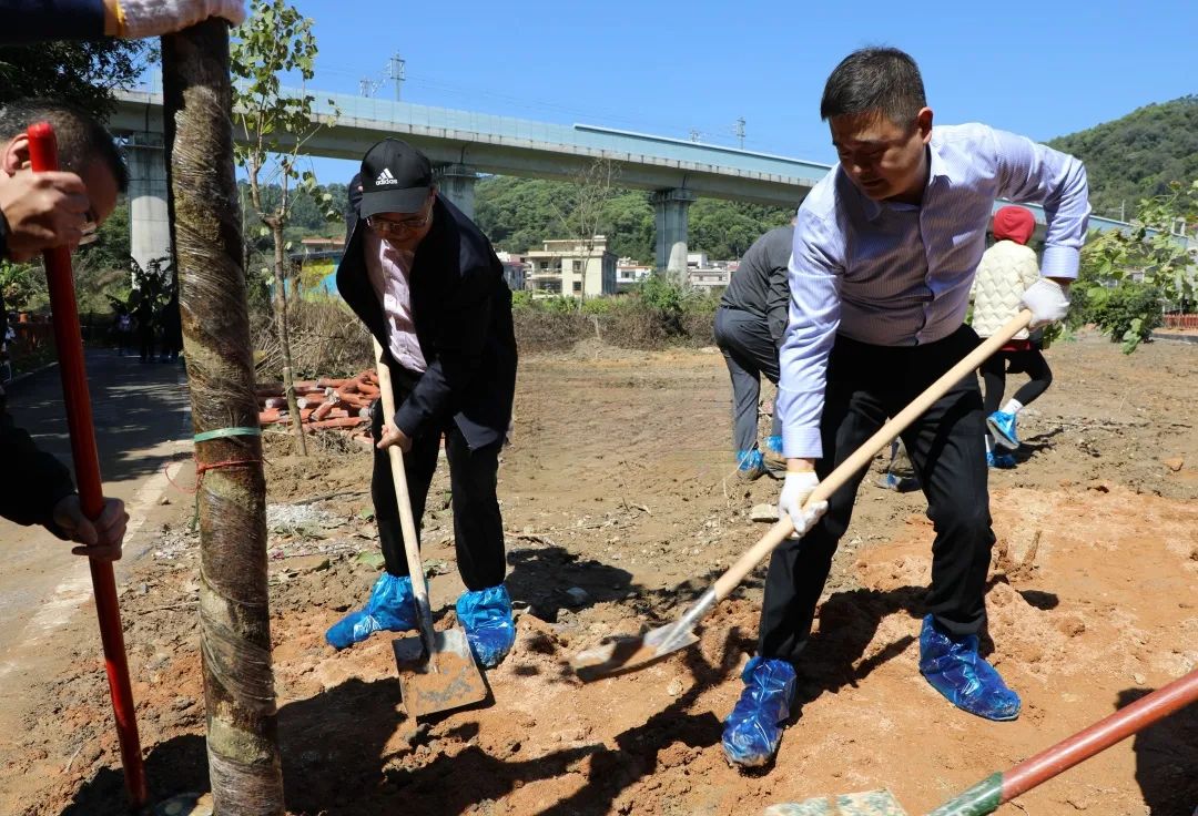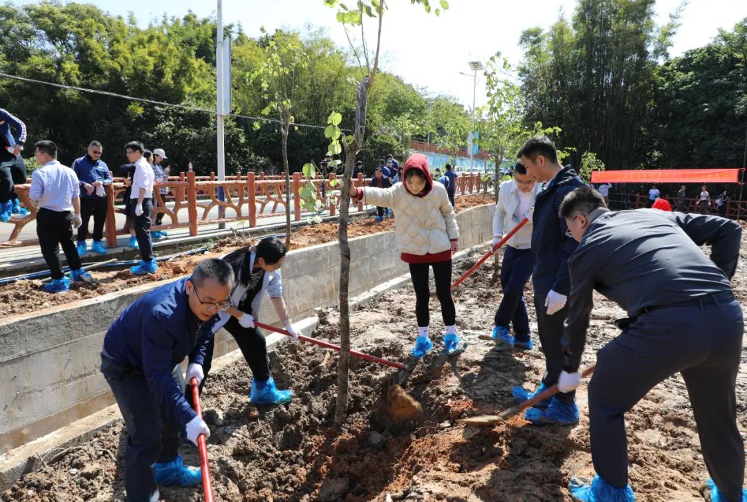 又是一年春好處,植樹添綠正當(dāng)時(shí)。為深入貫徹落實(shí)習(xí)近平生態(tài)文明思想,牢固樹立和踐行綠水青山就是金山銀山的理念,貫徹落實(shí)省委、市委、區(qū)委深入推進(jìn)綠美生態(tài)建設(shè)和鄉(xiāng)村綠化的工作部署,3月12日,正值我國第46個(gè)植樹節(jié),南粵基金集團(tuán)職工公益林建設(shè)暨義務(wù)植樹活動(dòng)在永寧街葉嶺村舉行。增城區(qū)林業(yè)和園林局四級(jí)調(diào)研員黃伍二、永寧街二級(jí)調(diào)研員黃玉成,南粵基金集團(tuán)董事長肖磊、總裁譙菲菲,全體黨員干部職工及葉嶺村工作人員百余人參加活動(dòng)。