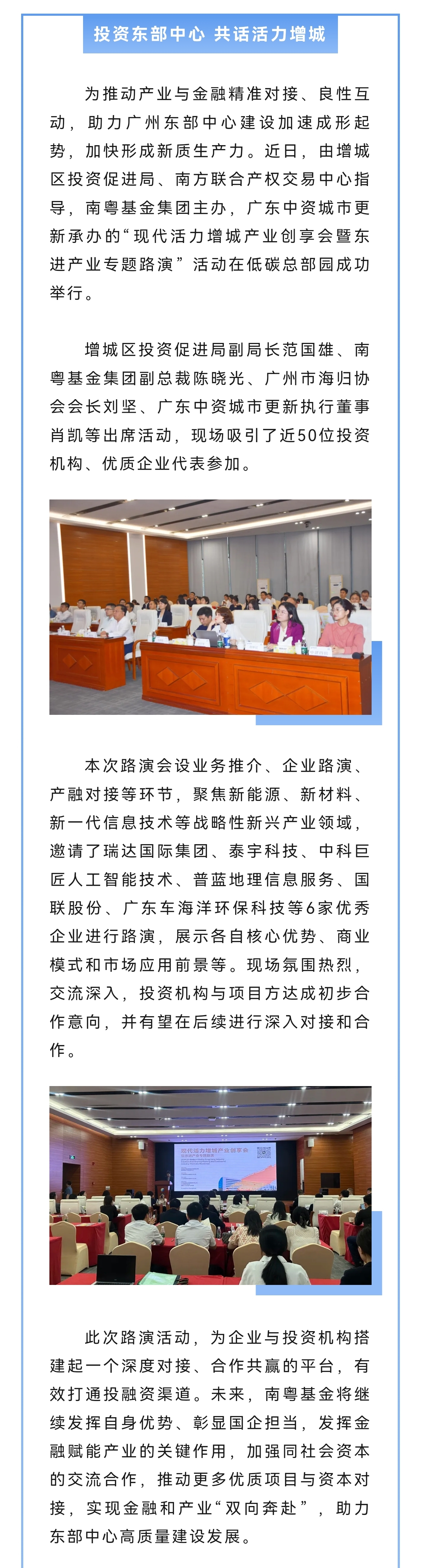 投資東部中心 共話活力增城——南粵基金集團成功舉辦產(chǎn)業(yè)創(chuàng)享會