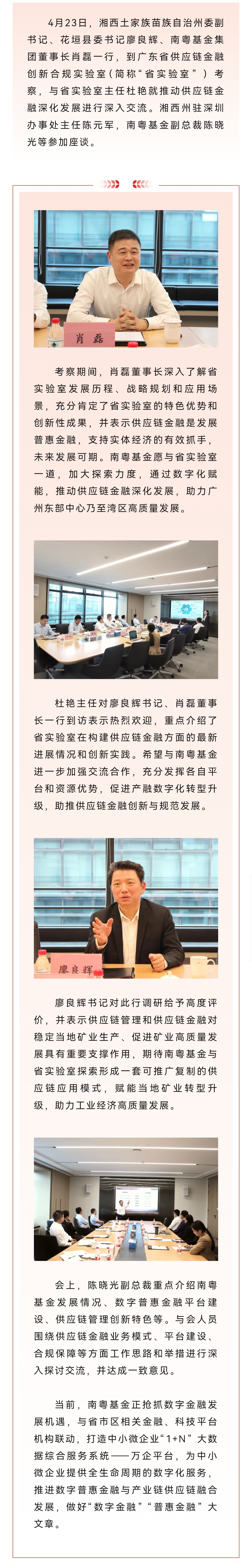 南粵基金董事長肖磊到廣東省供應(yīng)鏈金融創(chuàng)新合規(guī)實(shí)驗(yàn)室考察交流