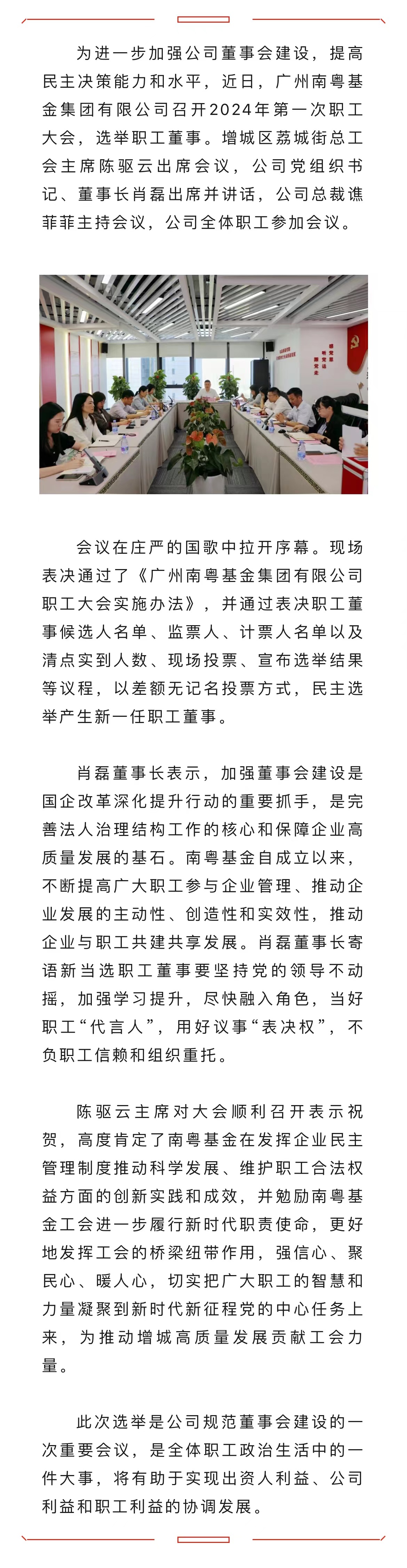 南粵基金召開2024年第一次職工大會(huì)選舉產(chǎn)生職工董事