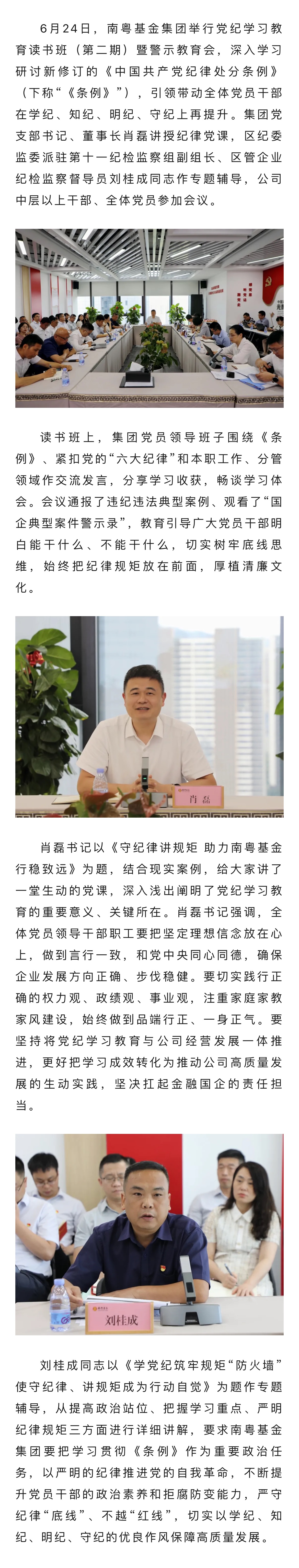 南粵基金集團(tuán)舉行黨紀(jì)學(xué)習(xí)教育讀書(shū)班(第二期)暨警示教育會(huì)