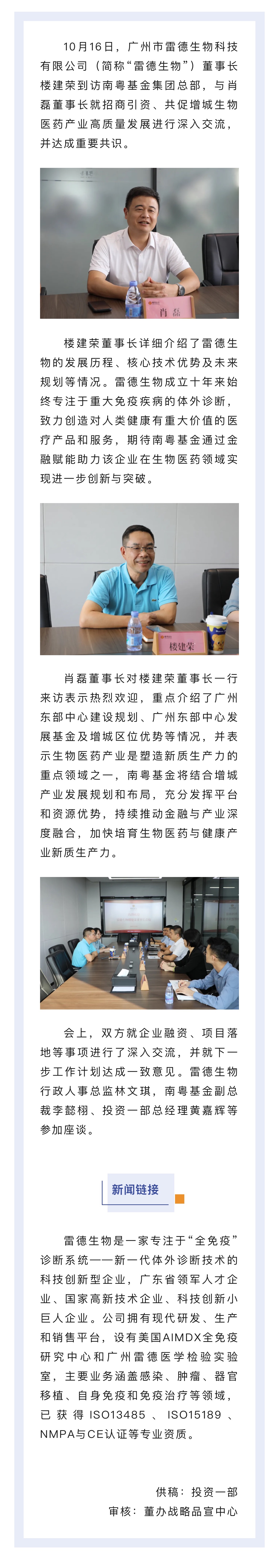 雷德生物董事長樓建榮到訪南粵基金集團