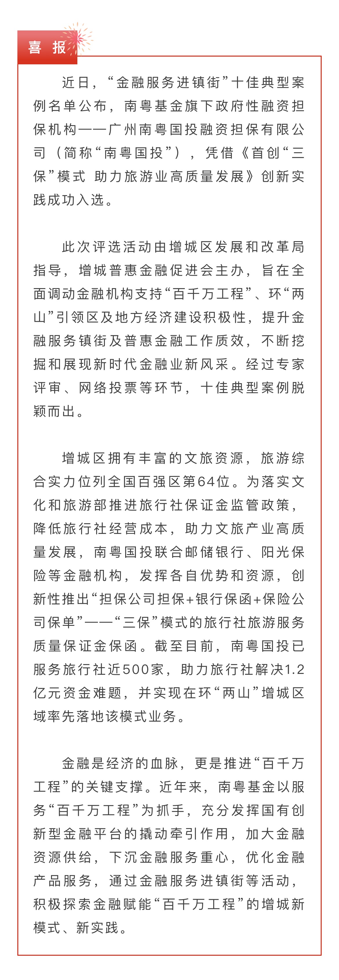 十佳!南粵國投入選“金融服務(wù)進(jìn)鎮(zhèn)街”典型案例