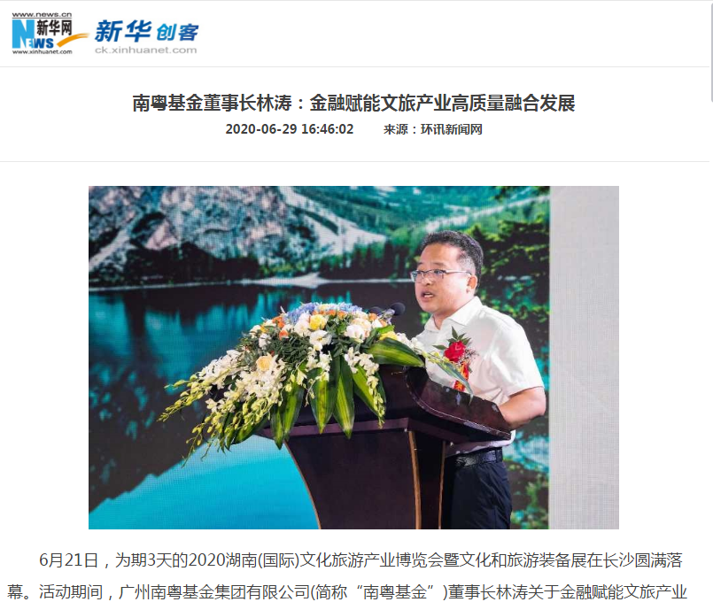 新華網(wǎng)|南粵基金董事長(zhǎng)林濤:金融賦能文旅產(chǎn)業(yè)高質(zhì)量融合發(fā)展