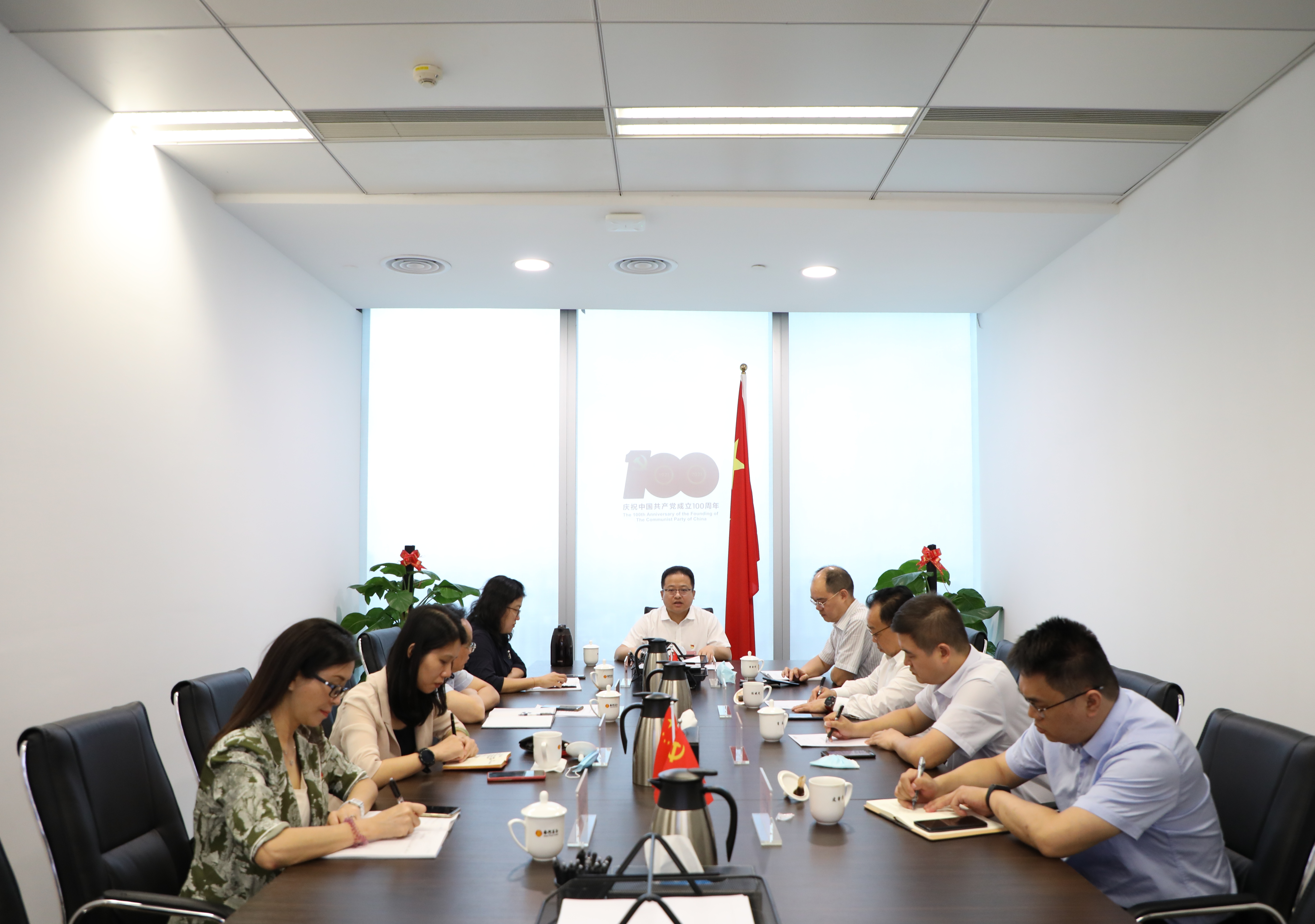 為大力弘揚偉大建黨精神,從百年黨史中汲取豐厚營養(yǎng)和強大力量,8月9日上午,南粵基金召開黨史學習教育專題組織生活會,深入學習貫徹落實習近平總書記近期重要講話精神,學習省市關于疫情防控、安全生產(chǎn)和三防工作會議主要精神,圍繞“學黨史、悟思想、辦實事、開新局”主題,交流心得,剖析問題,統(tǒng)一思想。公司黨組織書記、董事長林濤以普通黨員身份參會,結合自身學習收獲體會與黨員干部作了深入交流,并聯(lián)系學習工作實際深入自我剖析,同時研究部署南粵基金貫徹落實舉措。