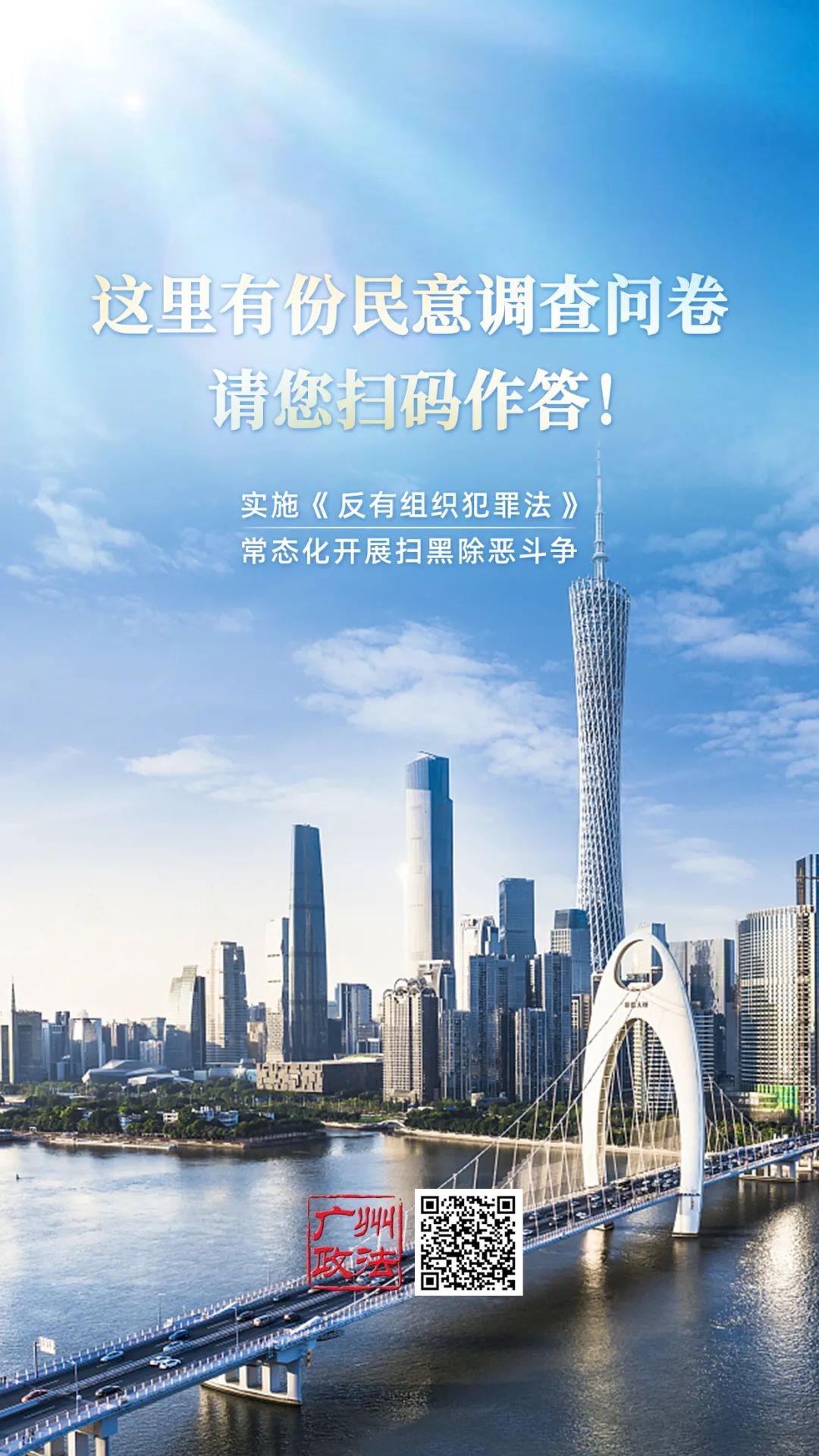 您也可以掃描下方二維碼,進入廣州市掃黑除惡斗爭網上主題展覽館,了解近幾年來廣州市掃黑除惡斗爭歷程。