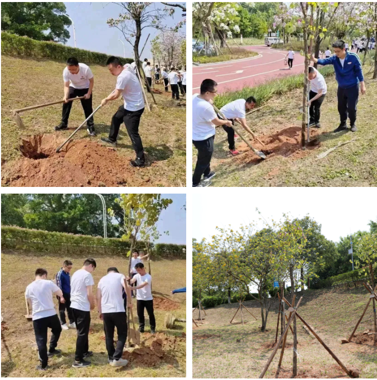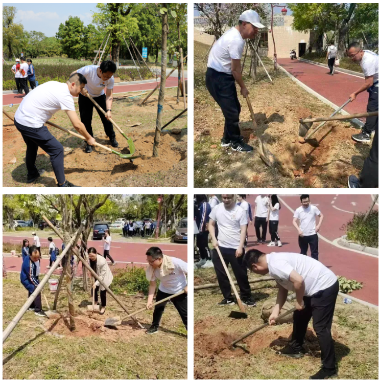 增江畫廊、綠樹成蔭,春風(fēng)習(xí)習(xí)、芳草依依。植樹現(xiàn)場,大家揮鍬鏟土、培土圍堰、提水澆灌……分工協(xié)作、密切配合,一片歡聲笑語、熱火朝天。在大家共同“栽培”下,一株株宮粉紫荊迎風(fēng)挺立,散發(fā)蓬勃生機(jī)。